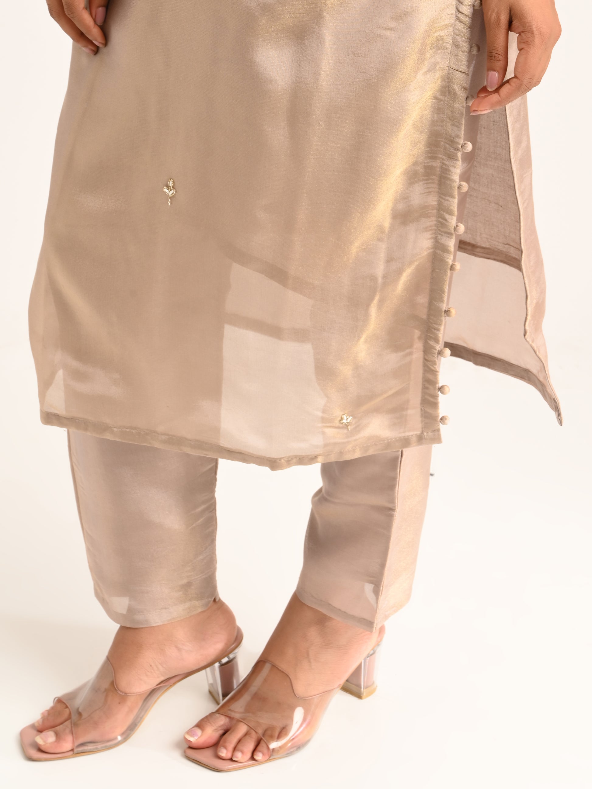 Champagne Beige Embroidered Kurta Set with Dupatta