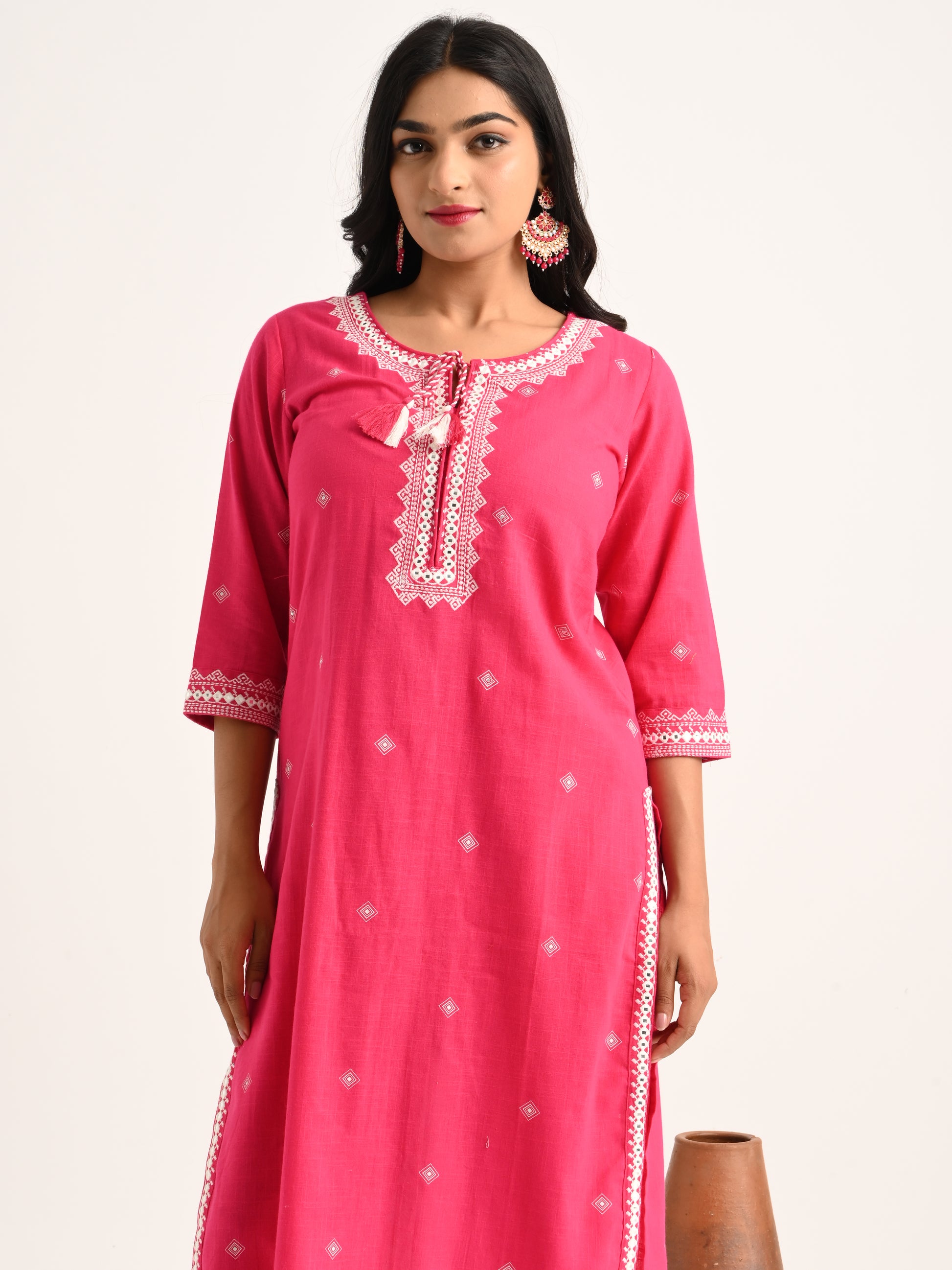 Fuchsia Threadwork Kurta Set