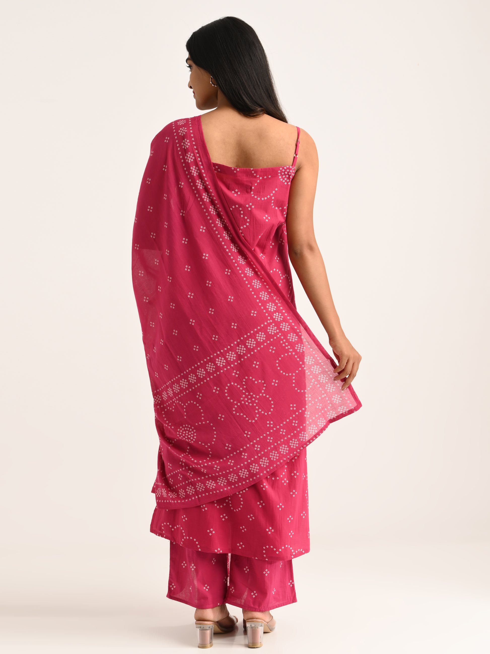 Rani Pink Sleeveless Printed Kurta Set with Dupatta